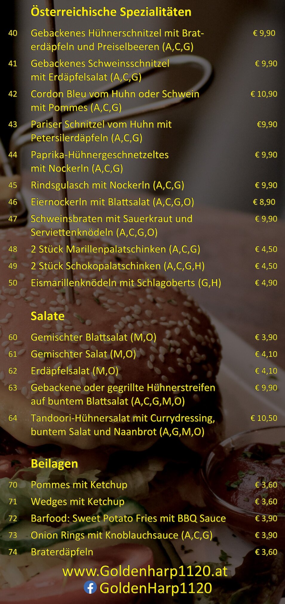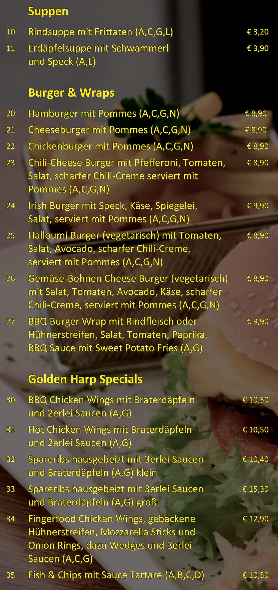 Corona-Karte - The Golden Harp Irish Pub Meidling Kaffeehaus Wien